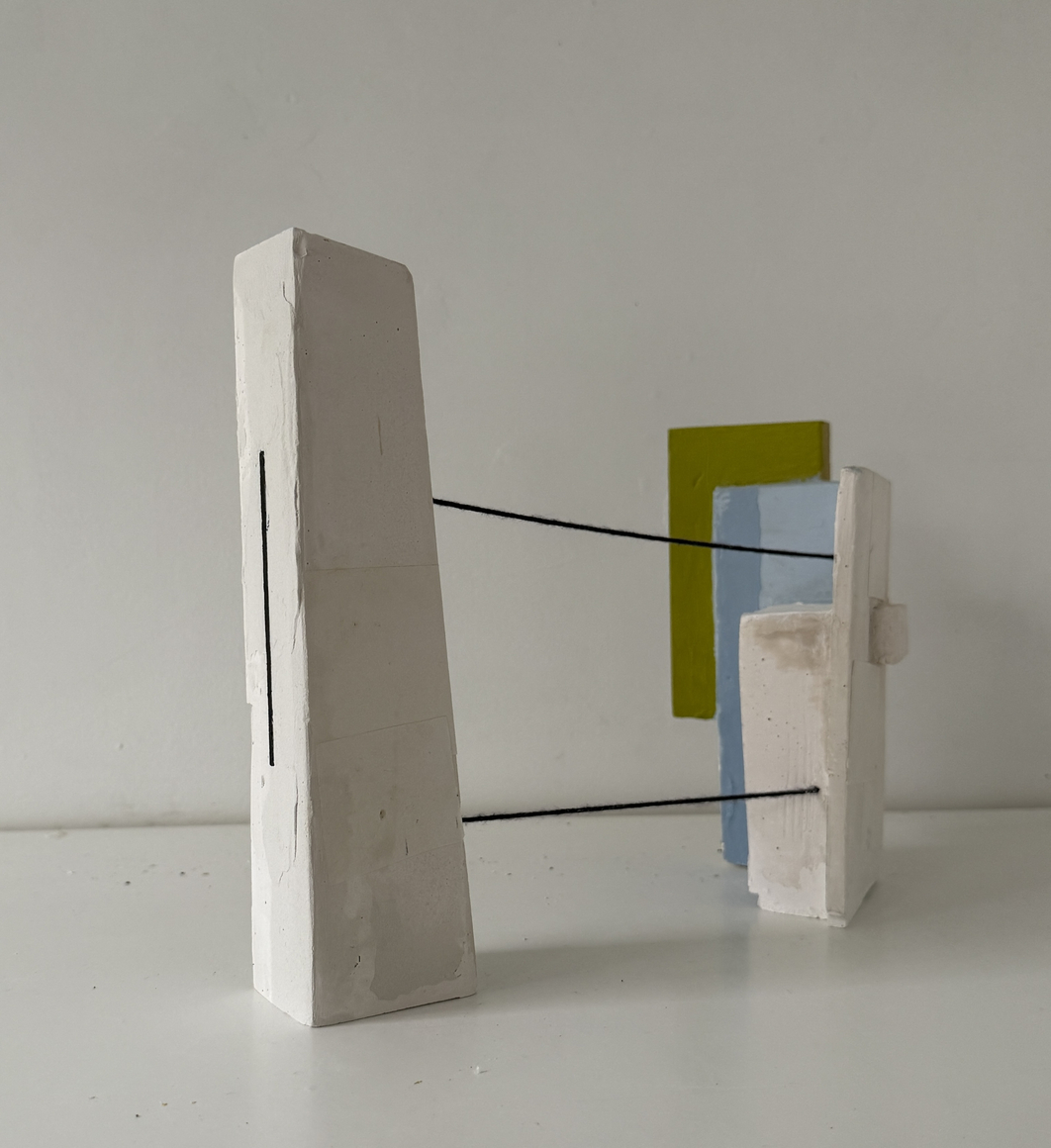 Webber’s use of materials, traditionally associated with the building industry, is fundamental to his work. Plaster, wood, metal and glass amongst others are used to build architecturally forward structures where form and shape create a dialogue between abstract geometry and the observed world.