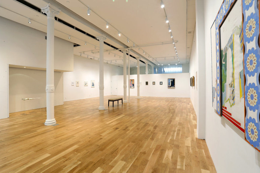 The works in the exhibition span a period of over forty years, from some of the artist’s earliest work during art school to his final masterpieces. Throughout his life, Rogers continually examined the complex notion of time and its role in the human experience. He believed forward movement and discovery are accomplished through examining history and creating relevance from the past within the present. Rogers spent much of his life studying scientific ideas relating to time and considering how certain discoveries would alter perception and the potential impact of these alterations. His life’s work was dedicated to studying the concept of human identity within the realms of modernity and progress; he firmly believed that the only way forward is to embrace and learn from, rather than reject, the contributions of the past. This dichotomy is captured in his work, which presents traditional subjects, such as classical and religious architecture, alongside modern ones. One of the artist’s most significant works is a large format, six-part canvas painting of Knossos, the largest Bronze age archaeological site in Crete. In this painting, Rogers pulls the ancient ruins from the past into the present by using bold colors and abstract motifs.